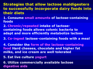 | 7. Modify behaviors and perceptions from past experiences to learn that dairy/lactose-containing foods can be easily incorporated into the diet |
