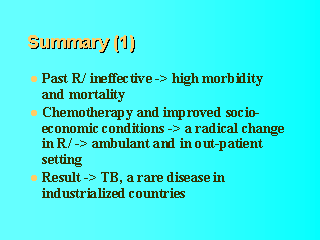 industrialized countries due to: *effective anti-tuberculosis drug regimes, *a good functioning TB-control and prevention infrastructure *improved socioeconomic conditions *increased awareness and high priority to overcome the disease. |