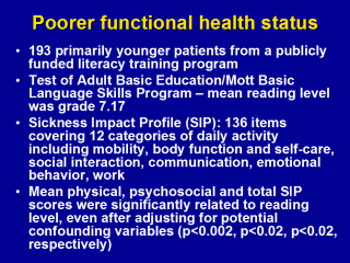 McGee DL, D’Estelle S. Health status of illiterate adults: relation between