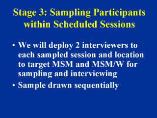 First cycle begins when interviewers arrive at site; interviewers count potential participants and randomly select 1