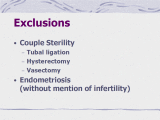 Females with a diagnosis of endometriosis without mention of fertility were also excluded. |