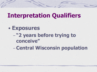 lifetime exposures or exposures that occurred while trying to conceive. Findings pertain to the population studied – Central and Northern Wisconsinites |