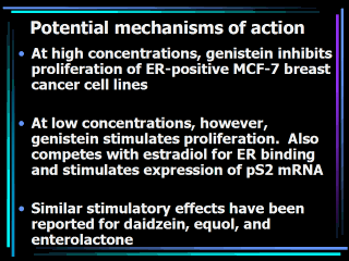 Laboratory studies have shown the effect of some isoflavones to be concentration Specific. pS2 mRNA is a specific marker of ER-mediated estrogen like activity. |