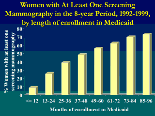 Women 40-64 years of age, with no participation in Managed Care programs, Medicare or spenddown, and no stay in nursing homes.
