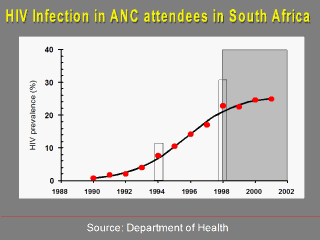 1999-2002 The period 1999-2002 epitomises the maturation of the major HIV epidemic in South Africa characterised by the epidemic reaching saturation. The HIV prevalence is almost static, masking the rapidly rising mortality and continued high incidence rates. |