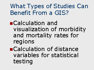 with the population estimate for each region. Calculation of distance variables for statistical testing In some situations, a GIS program can be useful as a data preparation tool prior to