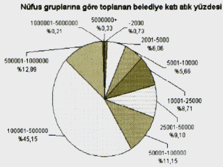 Grafik II. Türkiye’de 2001’de belediyelerin nüfus gruplarına göre topladıkları katı atık yüzdesi (7)