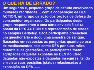 Os dois grupos foram também, limitados à inclusão de mulheres brancas entre 25-35 anos de idade, resultando um grupo de 33 expostas ao DES individualmente e um grupo controle de 21 não expostas.