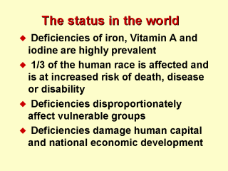 - Babies and infants - Children <5 years of age - Women of child bearing age - Pregnant women - Lactating mothers - The elderly |