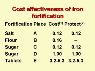 Cost (1) cost per person in $US 1994. Protect (2) Estimated cost per person per year of protection in $US 1994. Places A India 1980 B Turkmenistan 1977 C Guatemala 1980 D Guatemala 1980 E Guatemala 1980 Reading: World Bank. Development in practice: Enriching lives: overcoming vitamin and mineral malnutrition in developing countries. 1994. Washington D.C., The World Bank. |