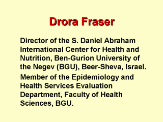 I am an Associate Professor of Epidemiology and the Director of the S. Daniel Abraham International Center for Health and Nutrition at Ben-Gurion University.