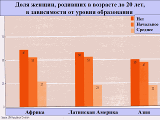 Наличие законченного среднего образования сопровождается двукратным снижением фертильности в возрасте до 20 лет.