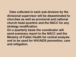 problems identified. Every 3 months, monitoring meetings will be held with supervisors, promoters, animators, FBO elders, village chiefs, chiefs of health centers, quarter heads and all partners involved to inform them of progress made so far. An external evaluator will evaluate the work every 6 months to ensure that the stated objectives are made. |