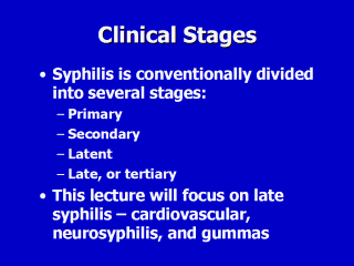 | It is important to remember that syphilitic infection is a true continuum. Overlaps between primary and secondary syphilis are well recognized. Staging is a clinical exercise with prognostic and therapeutic implications. |