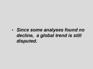 Several other authors examined historical data and found little or no change in semen quality. Therefore, whether or not there has been a global decline in sperm concentration is still disputed. |