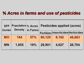 Three times as much land is used for farming in Columbia, Missouri than in Minneapolis, Minnesota and the use of pesticides is far greater in Missouri.