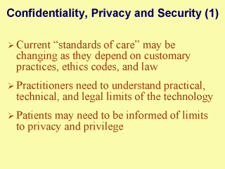 This is the first of six slides covering confidentiality, privacy and security of information.