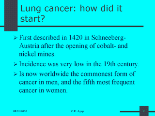 In 1912, Adler described 374 then known cases of lung cancer from the world literature. Lung cancer is now the commonest cancer type (21%) in males in the United States of America (USA) and in the European Union (EU). In 1985, the incidence of lung cancer among women in the USA rose above that of breast cancer. |