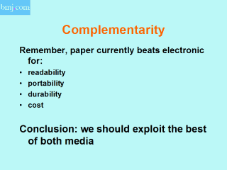 for millennia without batteries or upgrades **more magaziney ELPS articles obituaries news roundups letters [planned] - hand out copies *a tangible representation seems to be necessary. Successful pure eplays are rare. A physical presence has become not just a good idea, but the very key to survival. health dotcoms spent 70-550% of their revenue on marketing - a constant project to remind the univese of their existence (Medscape) results of questionnaires |