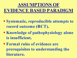 This slide summarizes the basic assumptions of the Evidence-Based paradigm.