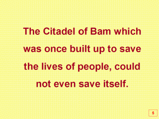 The 2,500 years old historic city of Bam, an internationally renowned heritage site, was almost completely destroyed.