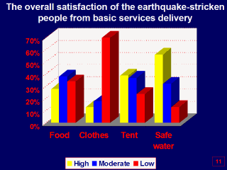 The most important reasons of their dissatisfaction were the poor quality of delivered services and inappropriate way of delivery that is eminent about the clothes and considerable about food and tents. |