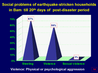 ![]() Security was a major concern, especially in earlier days. But after a few days police took control of everything. You see here the main social problems that people faced with, including steeling their loots, physical violence and psychological aggression and also sexual violence against their family. |