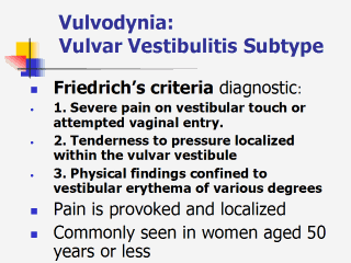 1. Severe pain on vestibular touch or attempted vaginal entry.