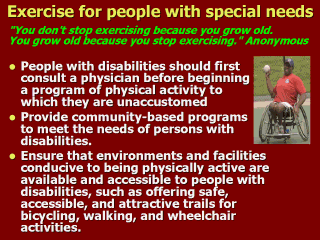 Ensure that people with disabilities are involved at all stages of planning and implementing community physical activity programs. |