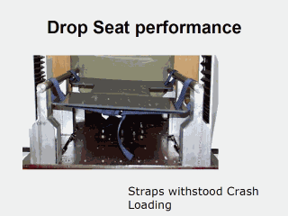 | This picture shows that most drop seats failed due to deformation of drop hooks. Webbing strap type drop seats withstood crash loading. |