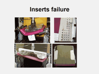 | These graphics show that most of the seat and back surface inserts failed at the points where the surrogate attachment hardware was attached. |