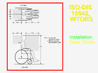 | This diagram specifies the front and rear clear space zones that should be maintained during vehicle installation to get optimum crash protection. That is, so a W/c occupant is less likely to contact another object in the vehicle during a crash event. |