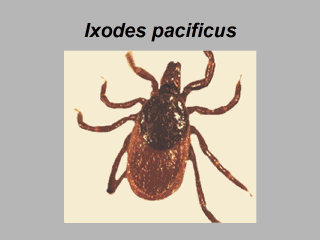 | Overwintering adults produce eggs in the Spring and the larvae feed primarily on white-footed and other mice during the summer. They molt into nymphs the following Spring and feed on larger animals in the woods and grasslands. This is the primary stage that transmits the Lyme disease pathogen to man, following a feeding period of 48 hours or more. Adults feed on deer and other larger mammals. |