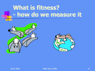 longer jump. A non-athlete will be aware of being to be able to do more, more easily and with less tiredness. Fitness means the effective delivery of glucose and oxygen to the tissues, efficient metabolism and removal of waste products and more energy turned into activity and less wasted in heat. Biochemically it is perhaps the PO2 at the level of the mitochondrion and the ability to uncouple ATP and to release energy more swiftly and efficiently. There may be accompanying biochemical or physiological parametyers so that fitness will be associated with a Haemoglonin level of 120-150 mgs./litre, increased insulin sensitivity, a normal lipid profile…. or a blood sugar and blood lipid level within the low normal range. Clinically it means an improvement in endothelial function, coronary blood flow, peak flow rate, pulmonary capacity, skeletal strength, muscle mass and mental performance. |