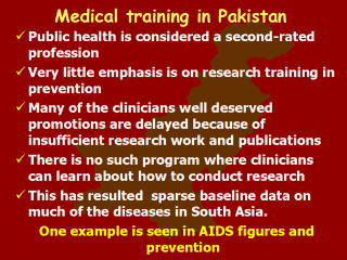 | AIDS educators in Pakistan face an uphill task changing the popular view that the disease does not concern locals but only those with overseas links. |