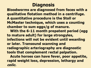 diarrhea and also intermittent constipation. Lameness from emboli in the
