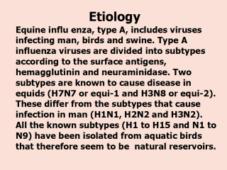 prototype strain: A/eq/Prague/56 (H7N7). It is still used in some vaccines. Since chilling weather was followed by many cases of influenza (always!) perhaps some such horses are silent carriers.