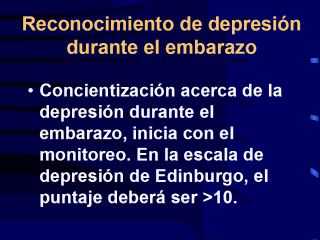 los médicos a identificar a la mujer embarazada con depresión. Pueden ser necesarias entrevistas o evaluaciones para depresión después del monitoreo Si el médico está consciente de la depresión, referencia para tratamiento puede ser implementada en un forma oportuna. |