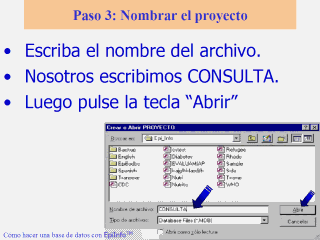 archivo es un "proyecto". El ordenador necesita identificar con un nombre el archivo donde usted va a colocar los datos. |