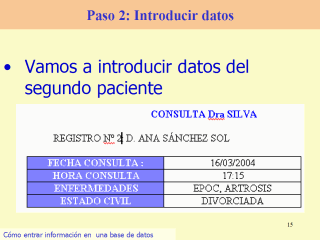 Ahora hemos de introducir los datos del paciente nš 2. Son estos.