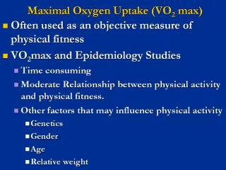activity is difficult to measure, Maximal Oxygen Uptake or VO2 max is often