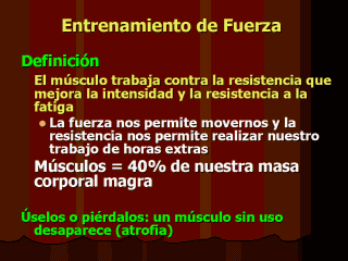 Ejercicio para la vida por Melissa www.som.tulane.edu/groupsbht/ Presentations/exercise.ppt Beneficios de una masa corporal magra aumentada (músculo) Mayor facilidad para realizar las actividades diarias Prevenga y trate la sacrolumbalgia |