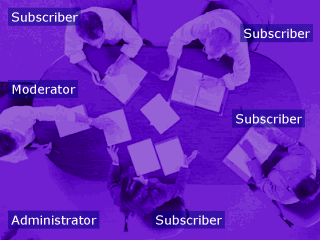 Any planned meeting must have somebody who takes in charge of administrative tasks: maintain the house opened, appliances in good status, etc.; so we say that person is an ADMINISTRATOR. Any planned meeting must have someone who (if necessary) maintains an order, so we say this person is a MODERATOR. Of course, any meeting on a particular theme must have members who subscribe an interest to meet with each other around a common interest. These are the MEMBERS or SUBSCRIBERS for the formed discussion group… |