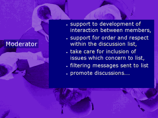The MODERATOR of a discussion group has support tasks to the very best evolvement of discussions inside the list. |