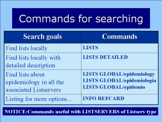 LISTSERVERS of Listserv(R) type... If you are interested in knowing which lists are available in a named LISTSERVER, say the Center for Diseases Control LISTSERVER, you could send a message to: