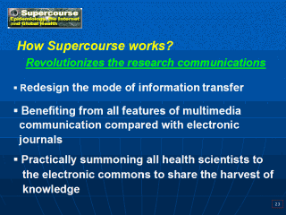 voice, pictures, slides and real time lectures. Supercourse has practically