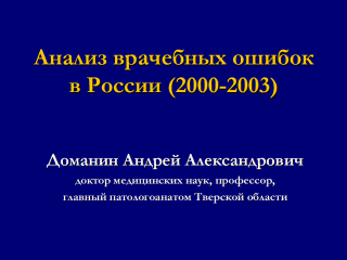 В лекции использованы некоторые данные из доклада главного патологоанатома России профессора О.Д.Мишнева.