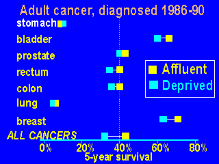 Why is the gap in survival for all cancers 11% when the largest gap for any of