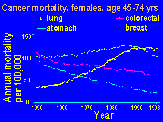 In contrast, the death rate from lung cancer has increased in women, as more