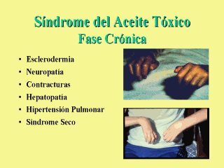 Finalmente, en la fase crónica se desarrollaron patologías del tipo de la esclerodermia, neuropatía y síndrome seco. Las causas de mortalidad fueron diferentes. Durante esta fase la neuropatía severa produjo grandes devastaciones musculares llevando a los enfermos a una insuficiencia respiratoria restrictiva